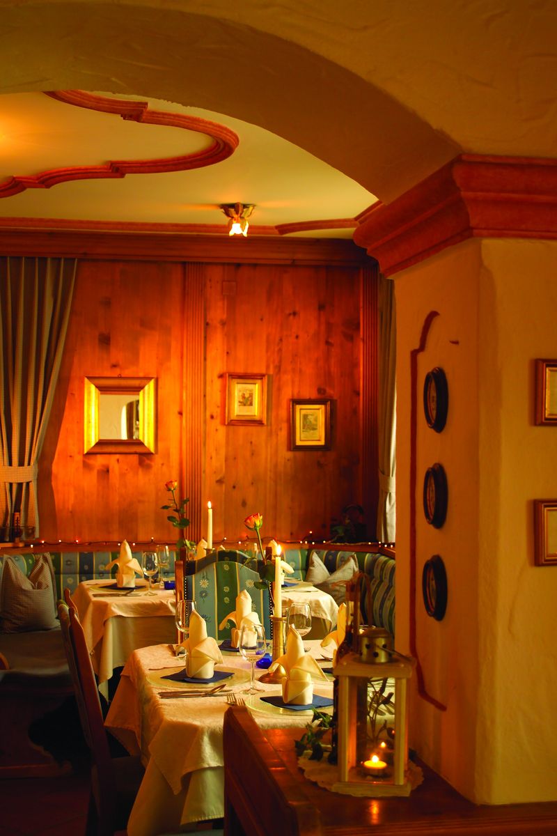 Zur HotelseiteEIN ERLEBNISURLAUB FÜR GENUSS-SPECHTE Diesem Motto entspricht auch die Küchenphilosophie. In unseren liebevoll gestalteten Stuben wird eine nicht alltägliche Schmankerlküche aus frischen heimischen Produkten aufgetischt. Highlights sind unsere wöchentlichen Themenabende mit saisonalen, raffiniert, zubereiteten Gaumenfreuden. Unser Betrieb ist auch Mitglied der „Tiroler Wirtshauskultur“ und wir wurden mit dem AMA-Gütesiegel „Kulinarisches Erbe“ ausgezeichnet.